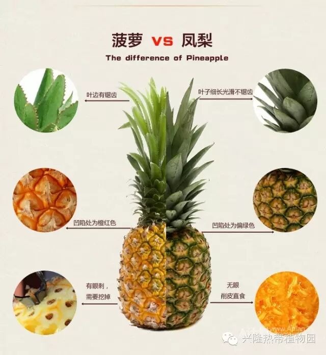 下面就让我偷偷给大家爆料我和我妹妹之间的细微差别吧:首先,凤梨妹妹的叶子较平,锯齿不明显,而我的叶子锯齿很明显,摸起来像是要割破手的感觉;凤梨妹妹的铠甲呈浅绿色,看起来淡淡的,而我的铠甲是金黄色的;还有,由于我的皮肤比较粗糙,脱下铠甲之后会有很多“内刺”,需要剔除才可以食用,而凤梨妹妹的“内刺”不太明显,基本上褪去外衣就可以直接食用了。